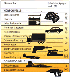 | Gehörschäden durch Lärmeinwirkung drohen bereits bei einem Beurteilungspegel ab 85 dB(A). | |