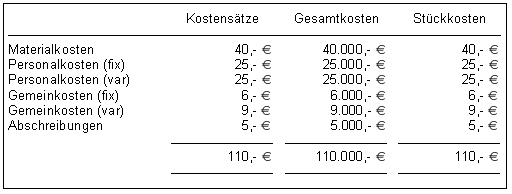 Bei der vollen Auslastung ist die Berechnung recht einfach: die Gesamtherstellungskosten ergeben sich aus Vollkosten/Stück x 1000.