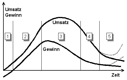 5. Ersatzphase: Hier ist nur noch der Ersatzbedarf vorhanden, falls das Produkt